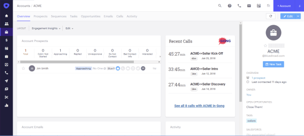 - Connect Outreach in order to have a sales revenue tile to access Gong calls from within Outreach.