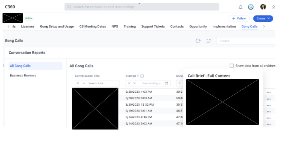 - Create Gong Calls section on C360 and add the report